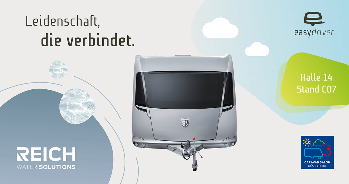 Reisebegeisterte können am frisch designten Messestand auf Entdeckungstour gehen und die Markenwelten von easydriver und REICH Water Solutions hautnah erleben (Halle 14 / Stand C07). Als verbindendes Element dient das übergeordnete Markenversprechen: Reich – The Quality Experience.